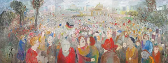 Gezeigt werden Werke von Kurt Mühlenhaupt aus den Jahren 1989/1990 – einer Zeit des Umbruchs, der Hoffnung und des Aufbruchs. Seine Bilder dokumentieren mit seiner unverwechselbaren Handschrift die Atmosphäre dieser historischen Monate, die geprägt waren von Grenzöffnungen, Begegnungen und der Suche nach einem neuen gemeinsamen Alltag. Die Ausstellung eröffnet einen künstlerischen Blick auf die Ereignisse rund um die Wiedervereinigung, der zugleich persönlich, poetisch und historisch ist.